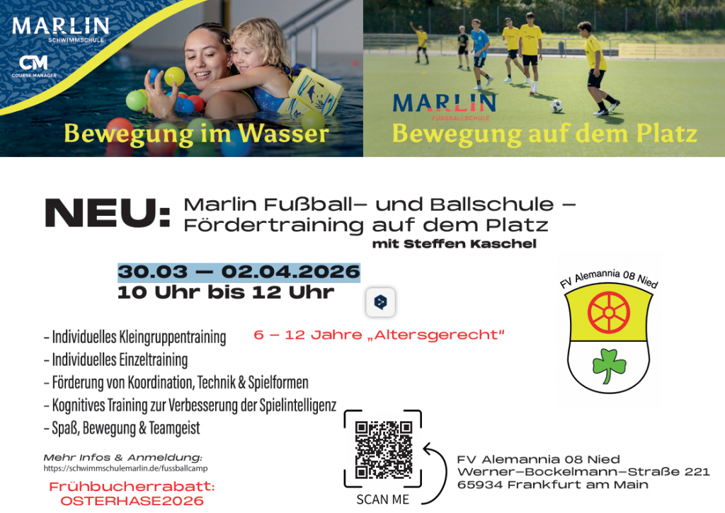 30.03 – 02.04.2026 Marlin Fußball- und Ballschule -Fördertraining auf dem Platz January 16, 2026January 16, 2026 admin